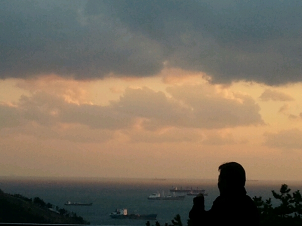 저 혼자 태종대를 보고 석양을 한컷 찍어봅니다.