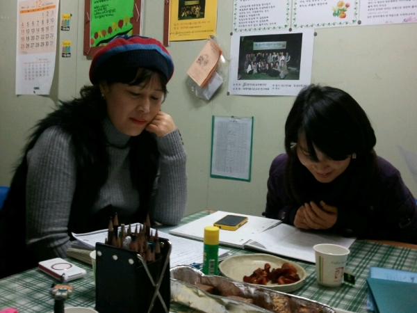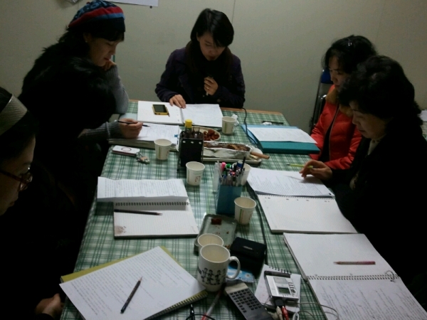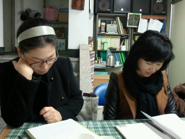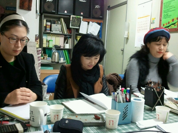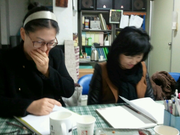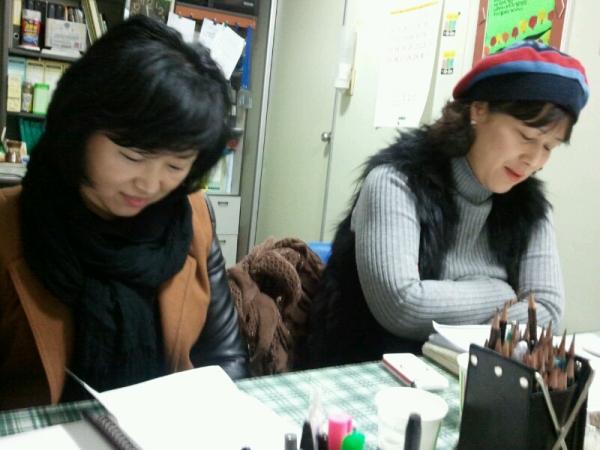 샘들의 수업 광경이 아주 진지합니다.