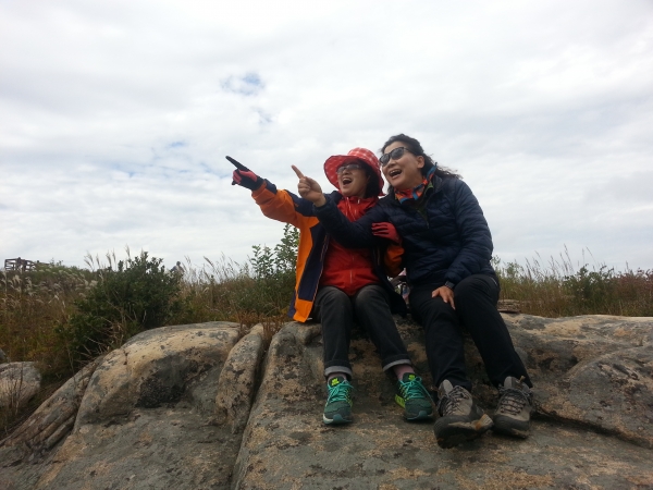 하늘공원에서 한 컷하고, 비로봉에 올라 한 컷, 폭신한 풀잎을 깔고 앉아 점심을 펼쳤다.