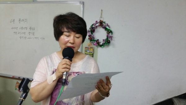 <조국> 먼저 녹음하신 팀장님들 낭송을 켜 놓았다.