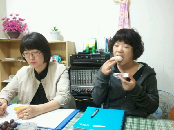 2012년09월21일 금요반 2주년행사시 낭송 연습중 댓글6개